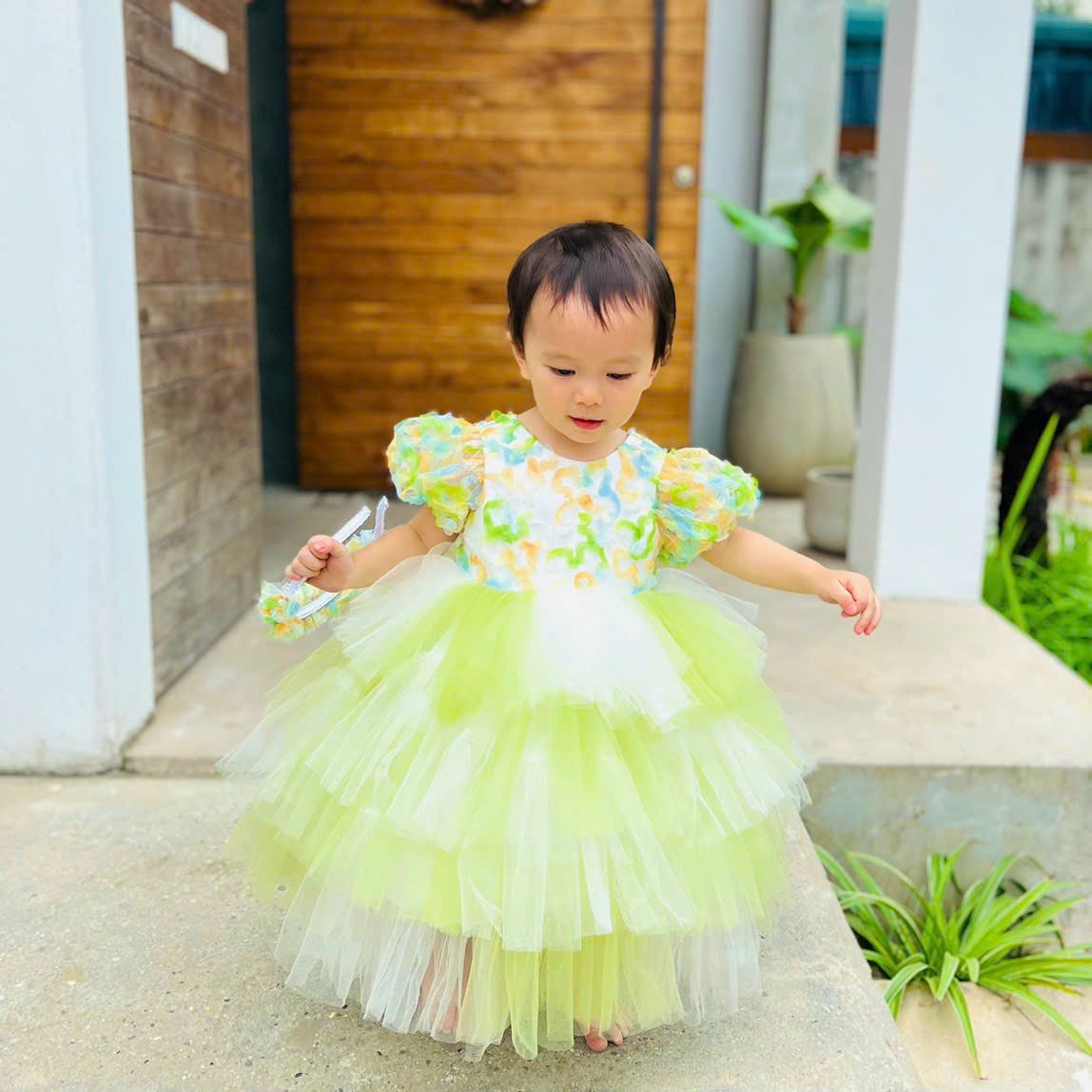 Chất Liệu Cao Cấp: Váy được làm từ chất liệu voan mềm mại với lớp lót lụa Habutai bên trong, giúp làn da của bé luôn được thoáng mát và an toàn.