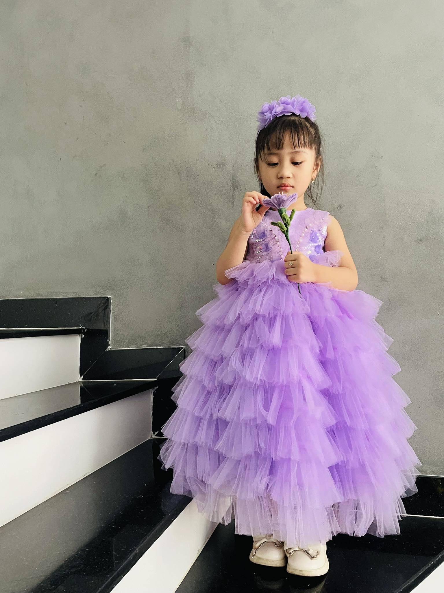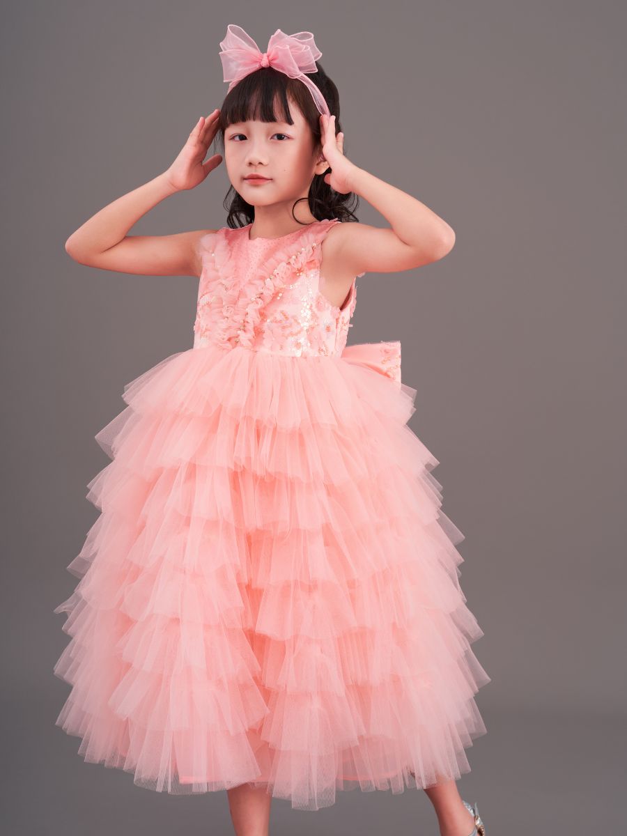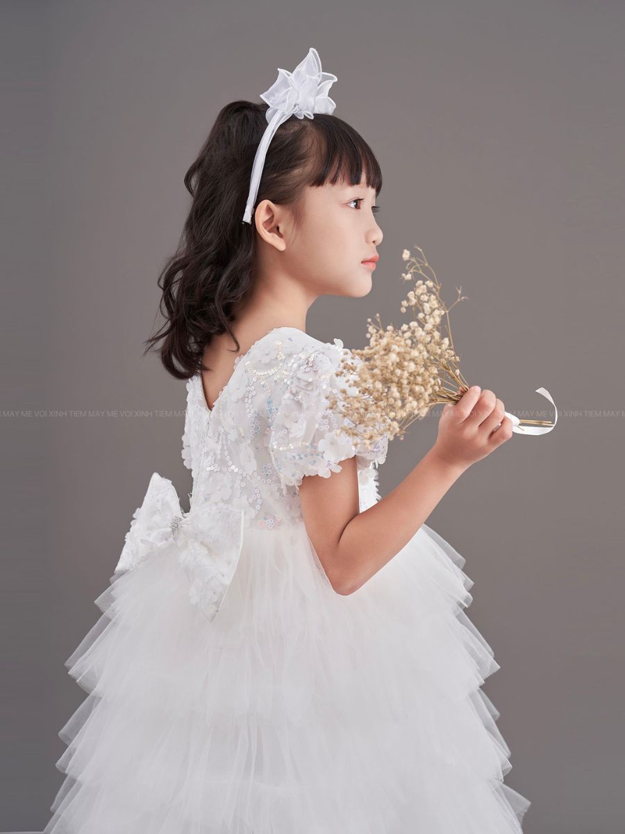 Với thiết kế tỉ mỉ, chiếc Váy công chúa kim sa dáng dài không chỉ làm tôn lên vẻ đẹp tinh tế mà còn mang lại sự tự tin và thoải mái cho bé trong mọi hoàn cảnh.