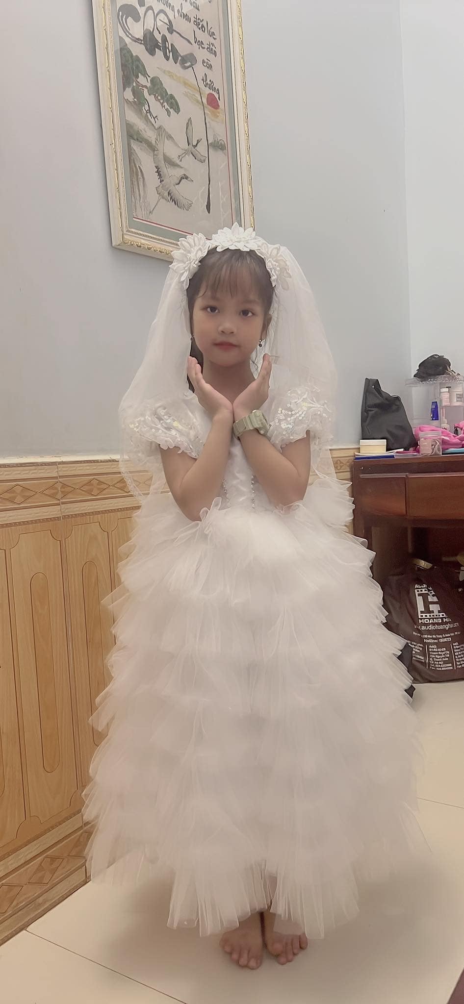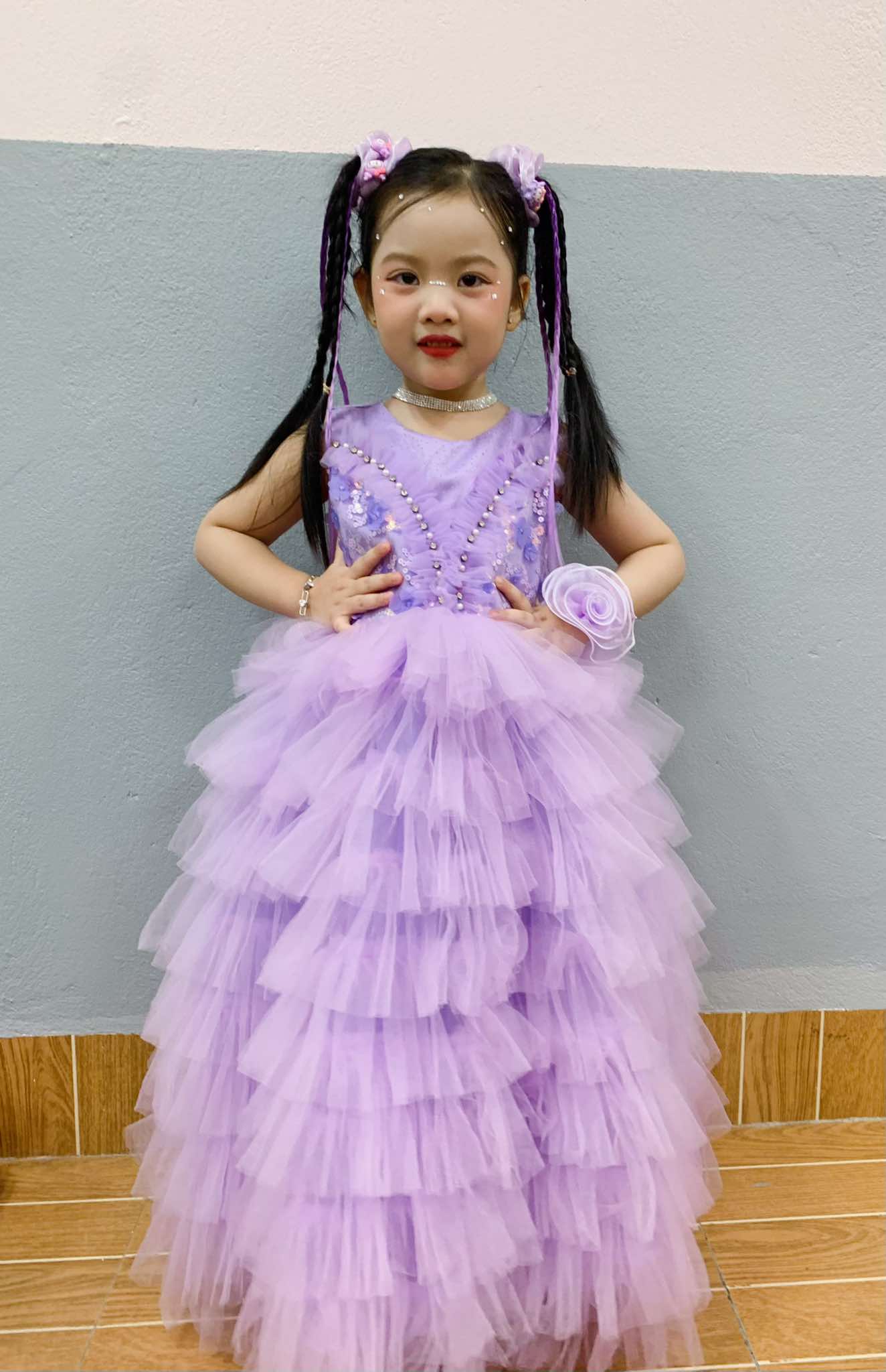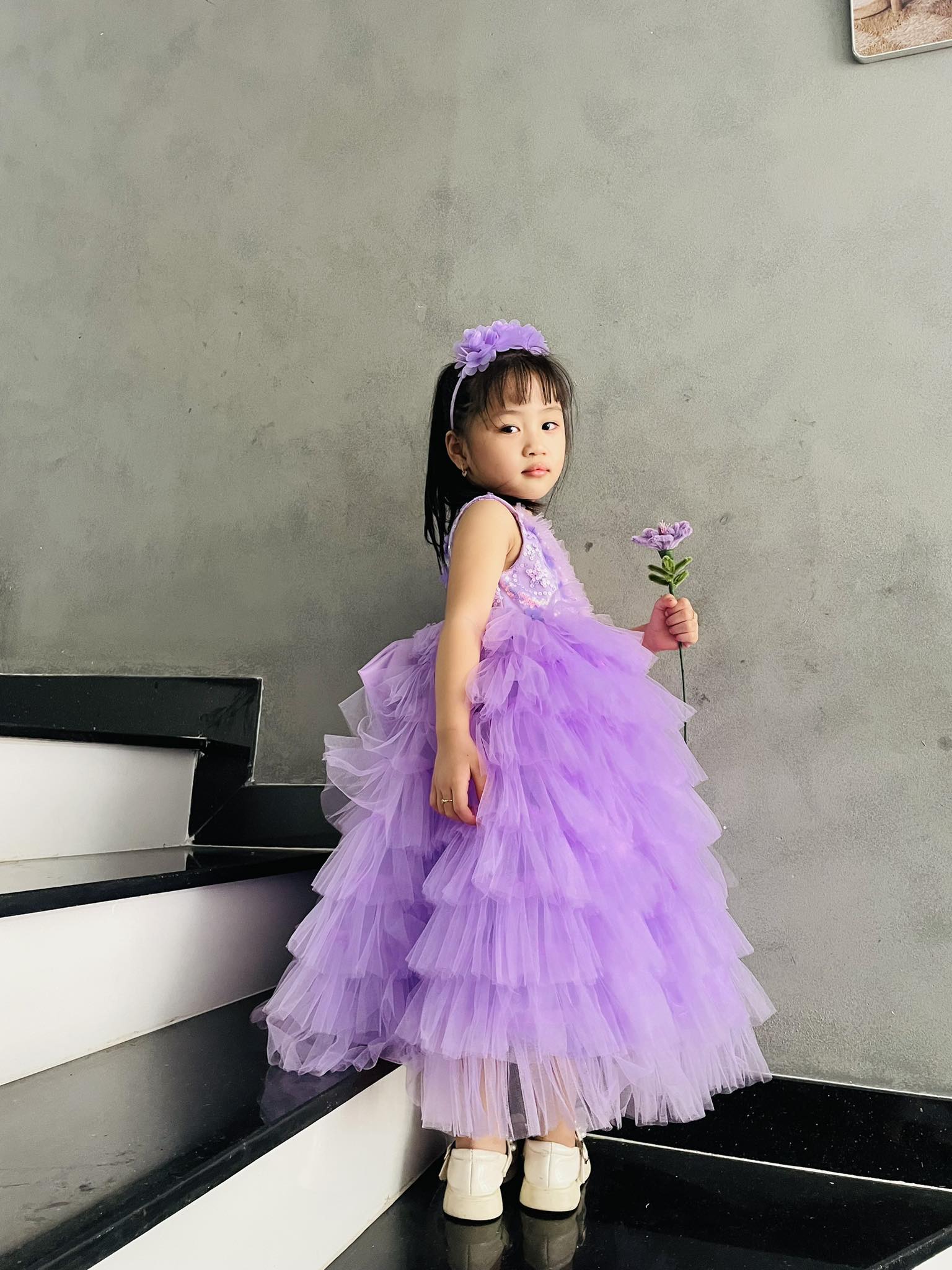 Với thiết kế tỉ mỉ, chiếc Váy công chúa kim sa dáng dài không chỉ làm tôn lên vẻ đẹp tinh tế mà còn mang lại sự tự tin và thoải mái cho bé trong mọi hoàn cảnh.