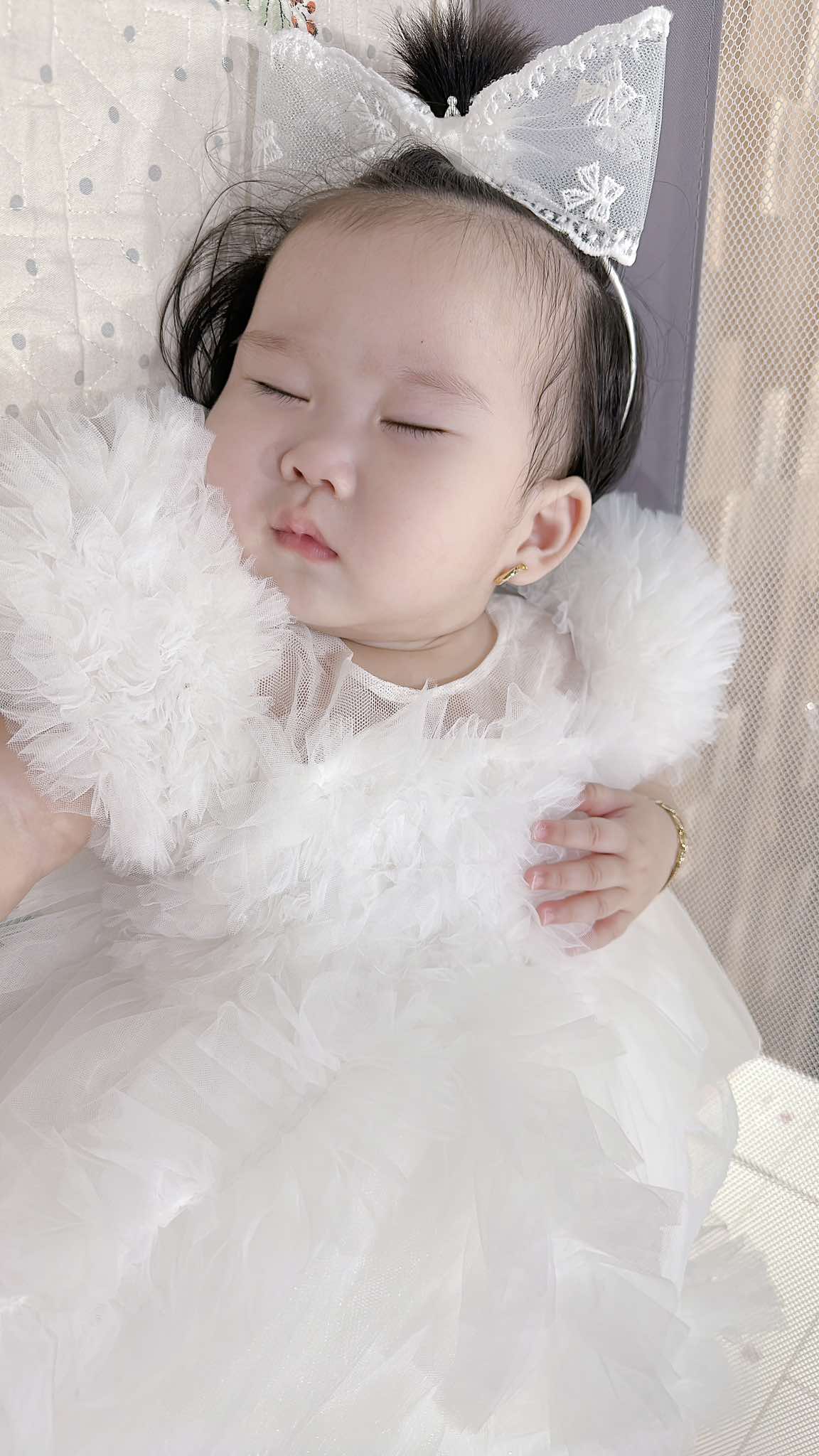 Váy siêu đẹp nhé các bạn.ngoài đẹp hơn ạ.bé nhà mình 6m 7,5kg mặc cũng xinh tăng lên 1,2kg nữa vẫn vừa vì váy sát nách.thực sự đẹp mọi người còn đắn đo thì mình khuyên nên mua nhé