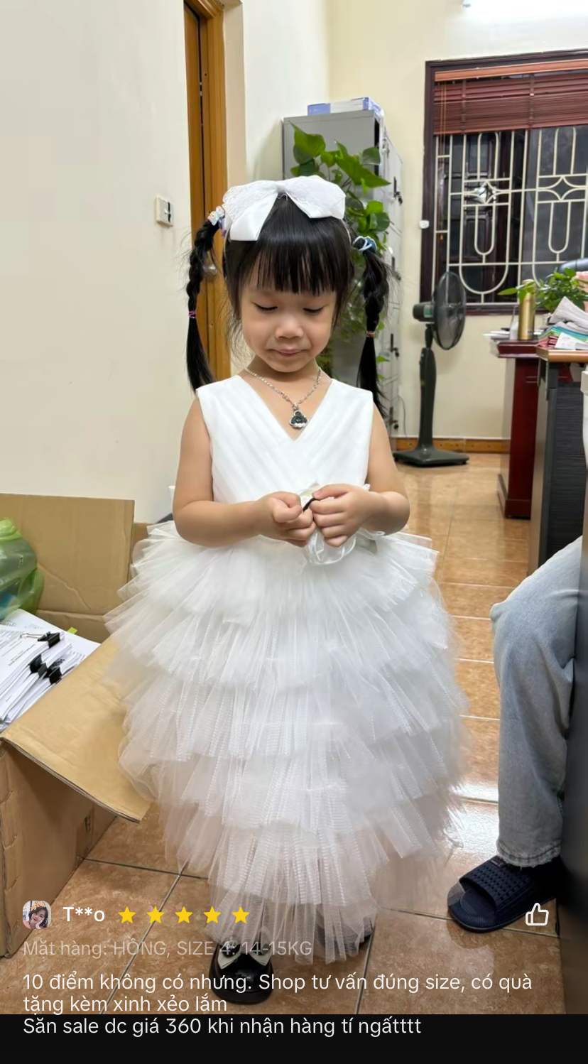 Với thiết kế tỉ mỉ, chiếc Váy công chúa xếp tầng không chỉ làm tôn lên vẻ đẹp tinh tế mà còn mang lại sự tự tin và thoải mái cho bé trong mọi hoàn cảnh.